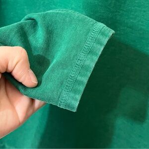 Thick 100% cotton bright green oversize long sleeve shirt. Washed look. Exposed hem and mock neck. Perfect layering or casually wear on its own.