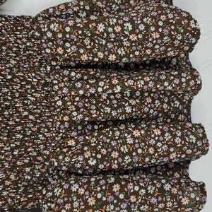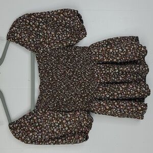 Milkmaid Blouse Smocked Square Front Cottage Core Coquette Dark Florals Womens S