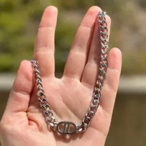 This elegant silver chain necklace adds a touch of sophistication to any outfit. Perfect for both casual and formal occasions.