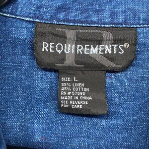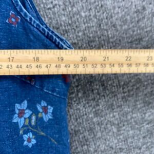 Requirements Dress Size L Blue Floral Linen Metal Button Up Peasant Ranch Farm