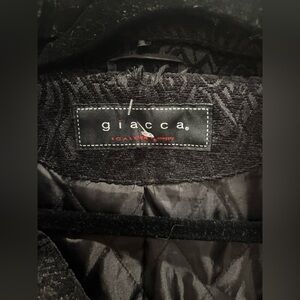 Giacca Black Textured Pea Coat with Faux Fur Collar vintage y2k small