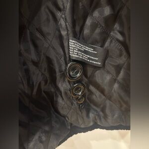 Chic black pea coat with a textured design. Features a stylish faux fur collar. Ideal for cool weather.