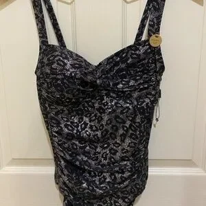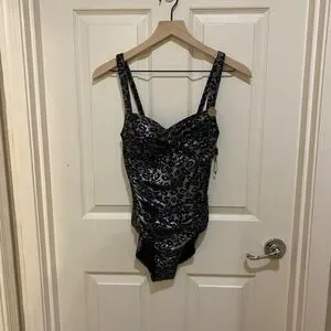Niptuck- One Piece Swimsuit-Multi Fit cup- Silver Metallic Leopard Print- Size 4