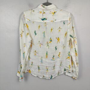 G.Kero 2016 Numbered Series Linen Shirt Womens XS Cream Tennis Print Button Up