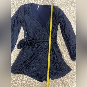 FREE PEOPLE Christa Sequin Romper in Blue