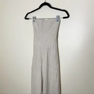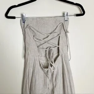 Elegant beige jumpsuit with strappy back. Perfect for casual outings.