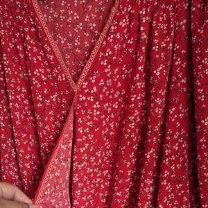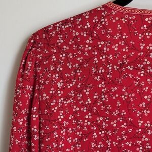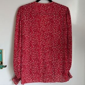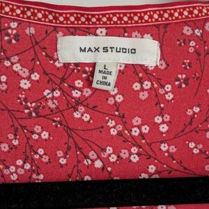 Max Studio Red White Floral Long Sleeve Wrap Style Blouse Large