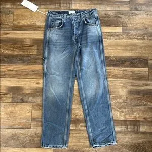 Boyish Blue Straight Leg Jeans with Gold Stitching
