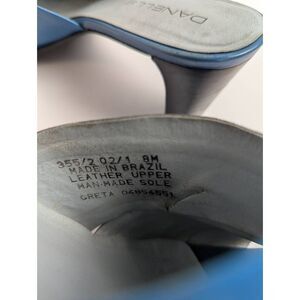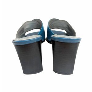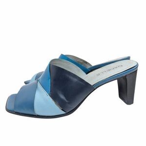 Vintage 90s Blue patchwork leather open toe mule heels Danelle womens 8