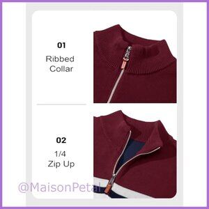 A soft, cotton sweater designed for comfortable layering during daily activities, business work, or outdoor casual wear. The 1/4 zip and ribbed details offer a versatile look suitable for multiple seasons.