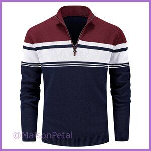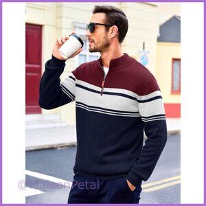 Men's 1/4 Zip Cotton Sweater Pullover Striped Long Sleeve
