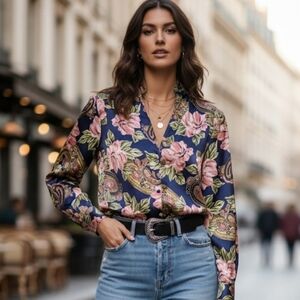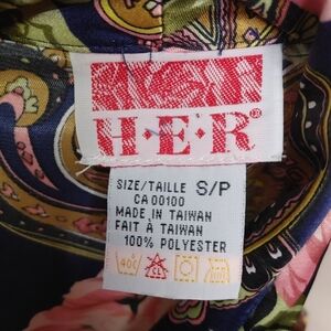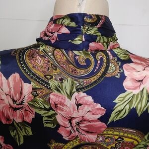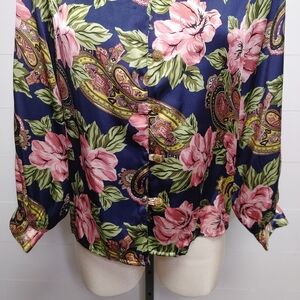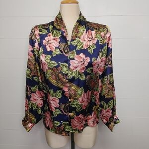 Vintage HER Floral Paisley Satin Blouse Size S