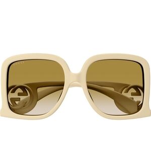 Stylish cream sunglasses with bold square frames. Iconic Gucci design for a modern look.
