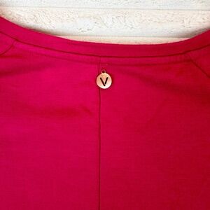 Livi Lane ombre long sleeve top features a vibrant pink to deep purple gradient design. Crafted from a soft jersey blend with a hint of stretch, this relaxed-fit shirt includes raglan sleeves, a classic crew neckline with a decorative V-stitch, and a high-low hem with side slits for easy movement. A small gold-tone logo charm adorns the back neckline, adding a subtle touch of brand detail to this comfortable, casual piece.