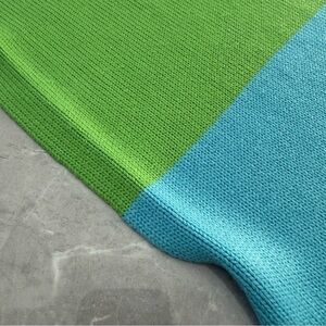 Good condition - Tommy Hilfiger Colorblock Tassel Throw Blanket. Colors: blue, green, and yellow. Size: measures about 50” x 57”.
