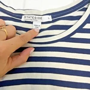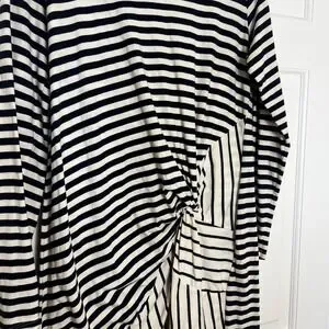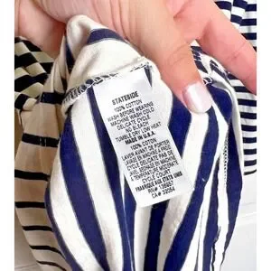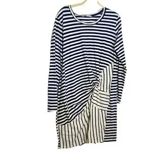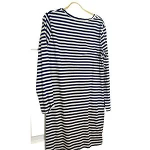 Stateside Midi Dress Womens Large Navy Striped Mixed Stretch Minimalist Beachy