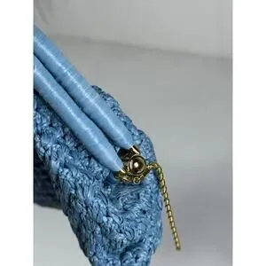 Description:The Loeffler Randall Trudie Frame Clutch blends structure and texture with its blue natural raffia construction. Designed as a versatile piece, it can be carried as a clutch or worn crossbody with the removable strap. Minor defect and strap damage are present, but the bag retains its stylish silhouette and practical functionality.