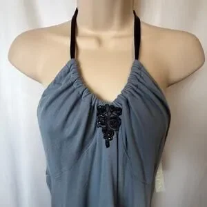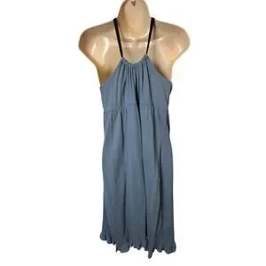 NWT Velvet by Graham & Spencer Halter Dress Blue Cotton Silk Trim Size L Western