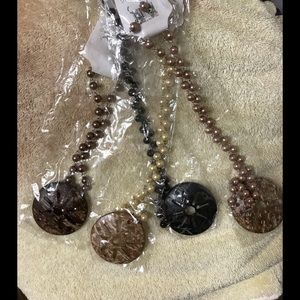 NEW Black Shell Necklace with Matching Earrings #1 Coordinated Set