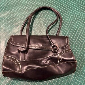 Stylish dark brown shoulder bag with elegant stitching. Perfect for daily use. Durable and chic design.