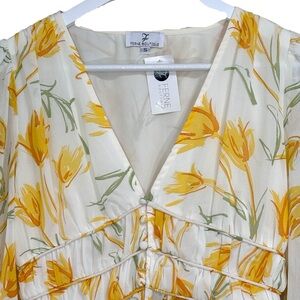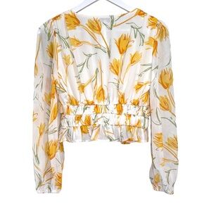 Ferne Boutique White and Yellow Floral Cropped Ruffle Women's Blouse NWT Small