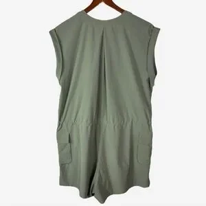 Athleta Sutton Romper Size 10 Green Lightweight Tie Waist Wrinkle Resistant