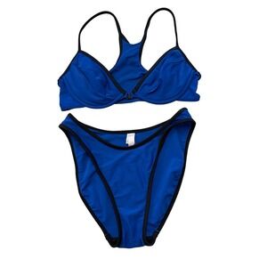 Victoria's Secret Y2K Royal Blue Black Trim Bikini Racerback Bottom M Top 34C