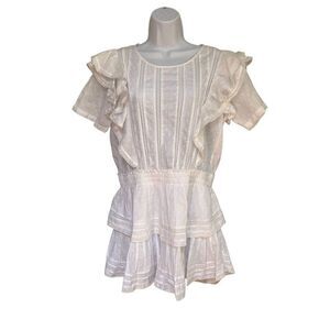 Love Shack Fancy Cotton Natasha Heritage Mini Dress White Ruffle Lace Size L 10