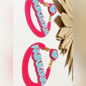 Hot pink Fabulous blue heart dangle drop earrings