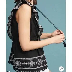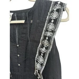 Anthropologie Akemi Kin Adelina Top Black Floral Embroidered Blouse Sz 6 Boho