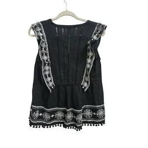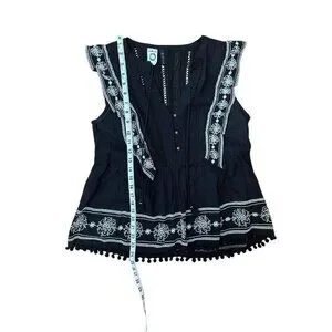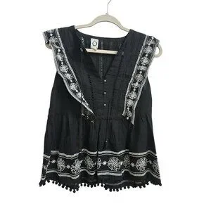 Anthropologie Akemi Kin Adelina Top Black Floral Embroider Peasant Sz 6 Boho