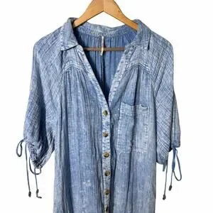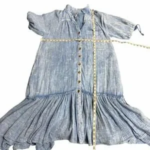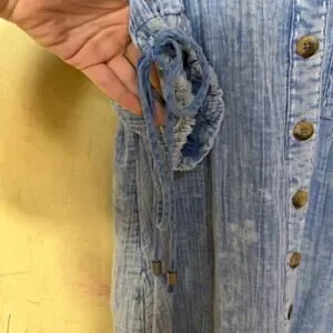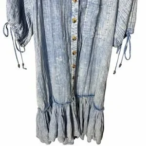 Button front relaxed fit boho peasant midi dress