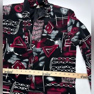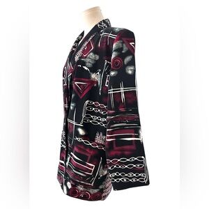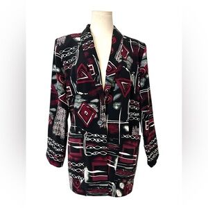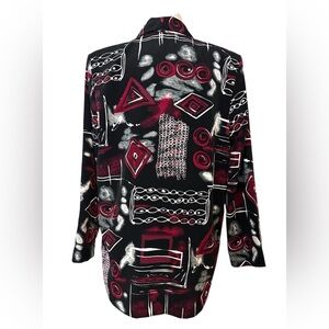 Vintage Emily Adams Women's Black and Red Patterned Blazer size small (D36)