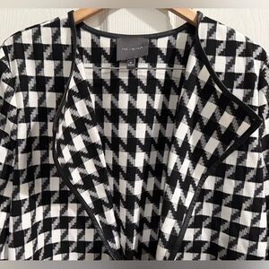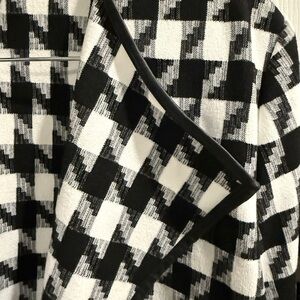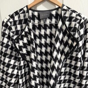 The Limited Black White Trench Coat Houndstooth Pattern Leather Trim w/ Pockets