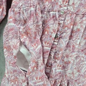 Tommy Bahama "Prima Petals" 3/4 Sleeve Dress in women's size Medium. Crafted from 100% breathable cotton, this effortless island-inspired dress features a soft pink floral print with a relaxed, flowy silhouette.
