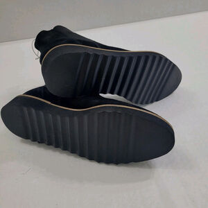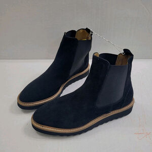 The product is a pair of Jack Rogers Women's Black Heel Pull-Tab Margot Almond Toe Leather Chelsea boots in size 5. These stylish booties feature an almond toe shape, a pull-on closure, and a 1-inch platform heel. Made from leather with a rubber outsole, they are suitable for casual occasions and can be worn in all seasons. The classic black color and solid pattern make them versatile for various outfits, while the Jack Rogers brand adds a touch of sophistication to your look. With a comfortable leather lining and insole, these boots are a must-have for any fashion-forward woman's wardrobe.