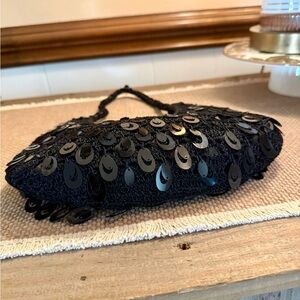 Black Sequin crochet shoulder bag hobo half-moon evening purse Y2K