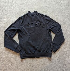 BCBGMaxAzria women's black cotton sweatshirt embroidered logo zip up Size Large