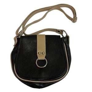 Borse In Pelle Black Tan Pebbled Leather Crossbody Purse Italian Bag Quality. Approximately 8" x 7.5". Gently used and in excellent condition.