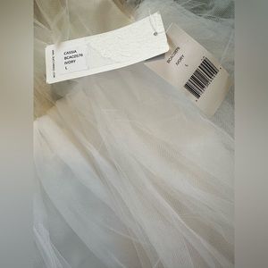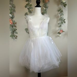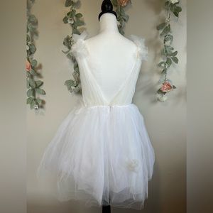 Cut in a fit-and-flare silhouette, Katie May's Cassia tulle minidress is decorated with tonal floral appliqués and a plunging V-neckline.