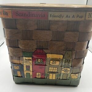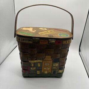 Vintage Caro-Nan Hand Painted Woven Basket 1960's Little Rock, AR