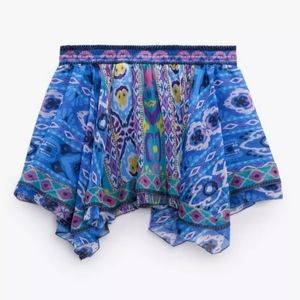 NWT Zara Colorful Printed Pull On Style Assymetric Mini Skirt