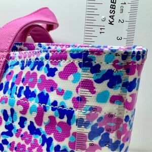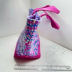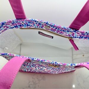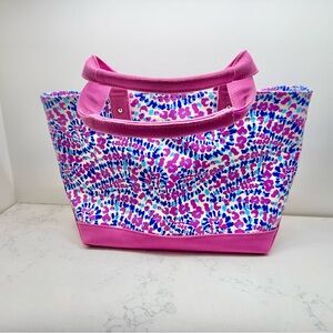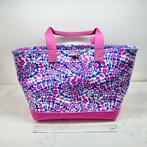 Elevate your style with this chic pink and blue tote bag. Perfect for any occasion, this bag combines fashion and functionality. Based on the colorful, abstract pattern with pink, blue, and white hues, and the overall design, it closely resembles styles found in the Vineyard Vines Heritage Collection. Excellent condition.