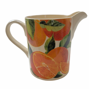 Emma Bridgewater “Vegetable Garden” citrus, oranges, ceramic large straight jug, pitcher, milk jug made in Stoke-on-Trent, England UK.