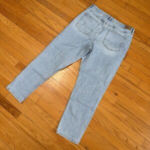 American Eagle Mom Jeans 14 Light Wash High Rise Relaxed Tapered Strigid Denim