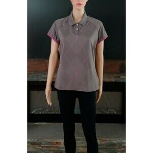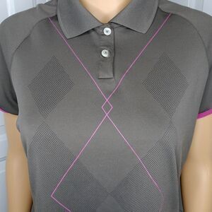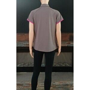 Nike Golf Dry Fit Top Medium Women's Collard Button Gray & Pink Short Sleeve Top