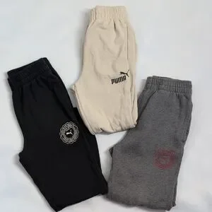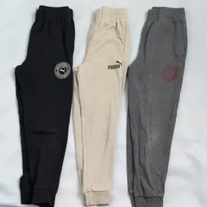 Set 3 Puma Kids Sweatpants - Black, Gray, and Cream Used Play Joggers