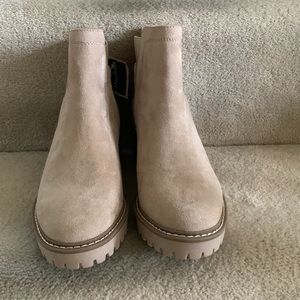 Chic suede booties with a rugged sole. Ideal for everyday style.