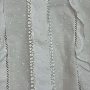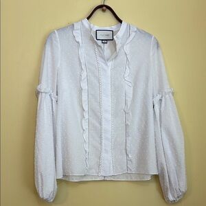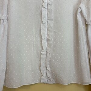 Alexis | White Dobby Swiss Dot Ruffle Button Up Long Balloon Sleeve Oversized Blouse Top in size Small XS