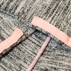 Stylish Handkerchief Hem knit top with a black and white pattern with a touch of pink. Ideal for everyday wear.